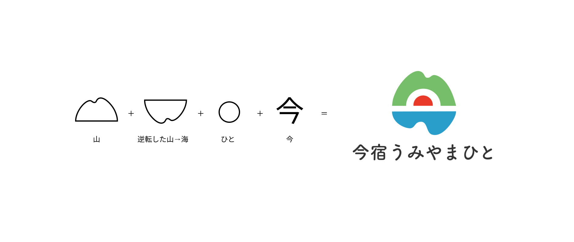今宿の「今」という漢字をベースに、「うみ」と「やま」、そして中央には今宿の情熱を持っ「ひと」という3つの要素を融合したロゴマークとなりました。