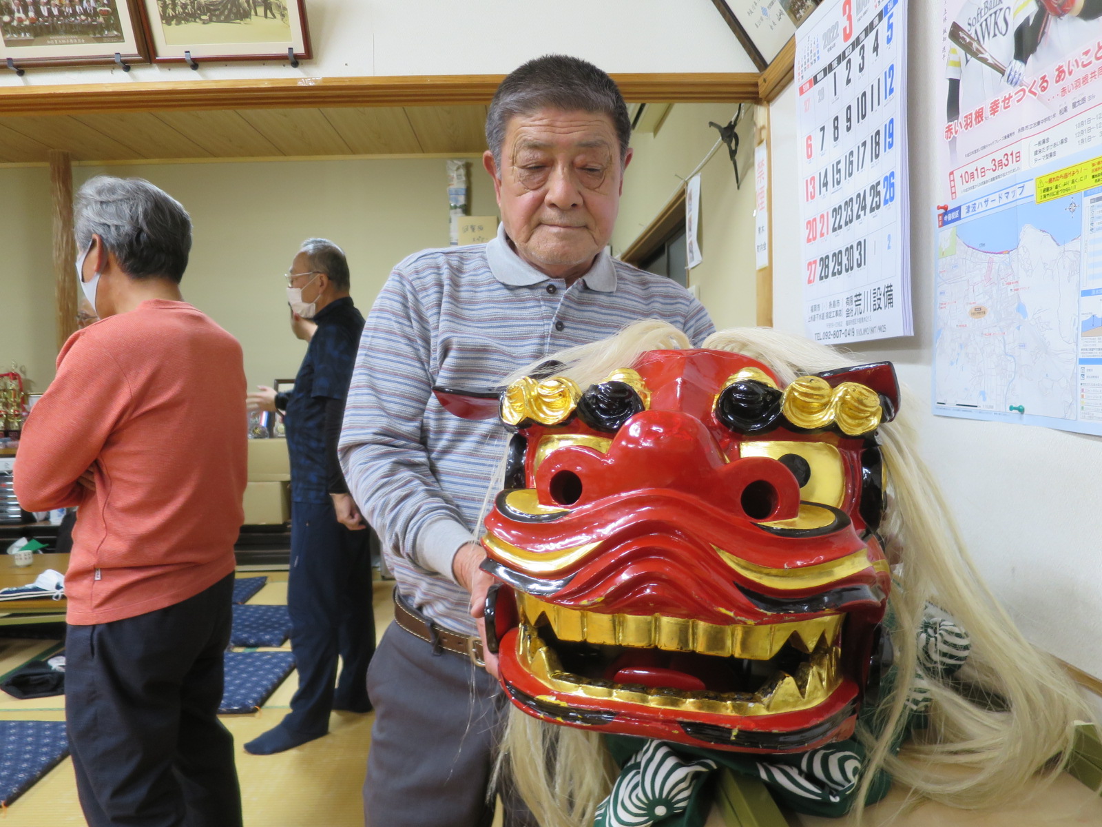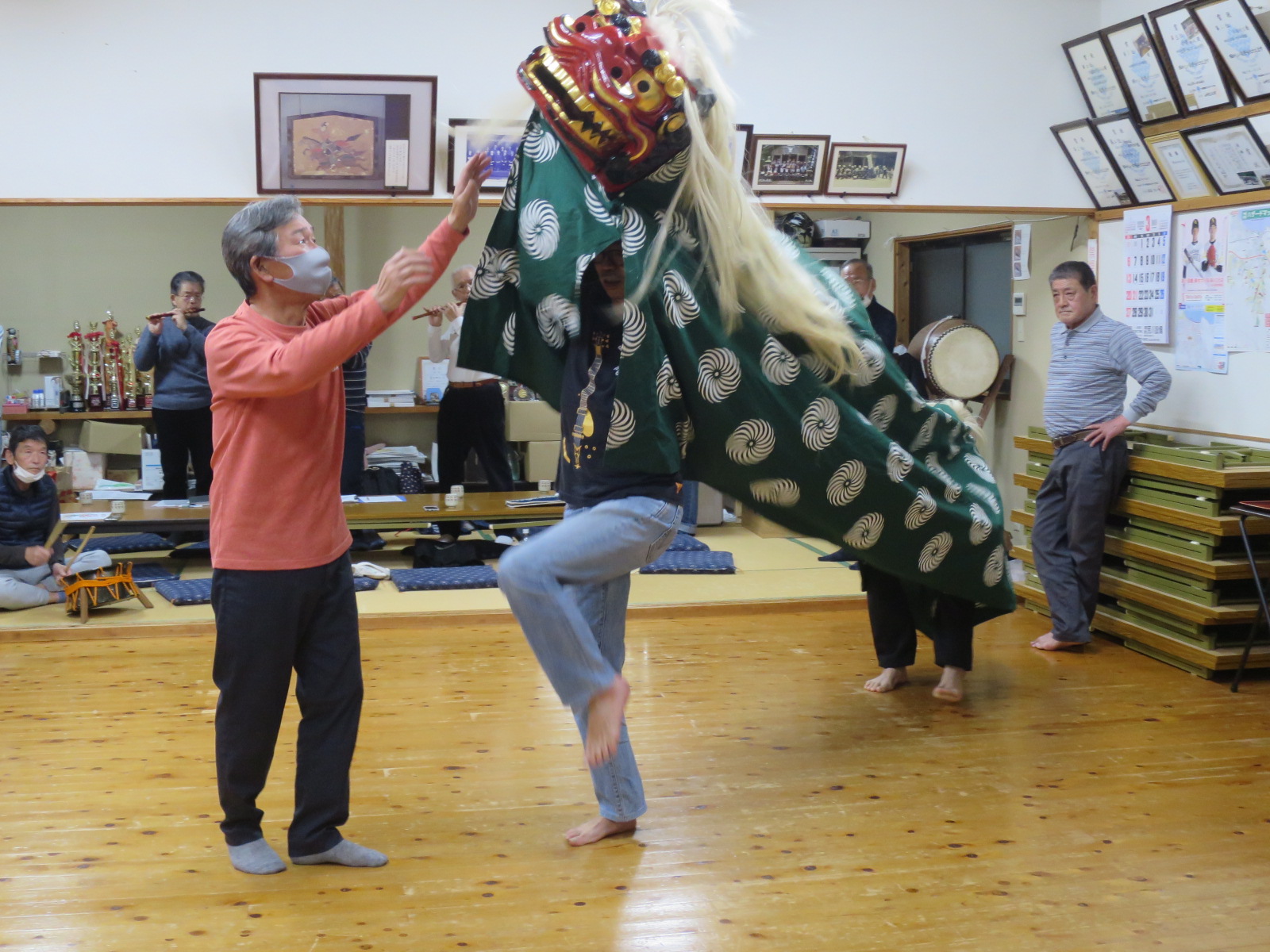 後からもうひとつの動機を聞きました。「獅子舞保存会のメンバーは、自分が小学生の時にソフトボールを教えてくれた地域のお父さんたち。お世話になったので、今度は獅子舞で貢献できるならうれしいと思い、引き受けた。」