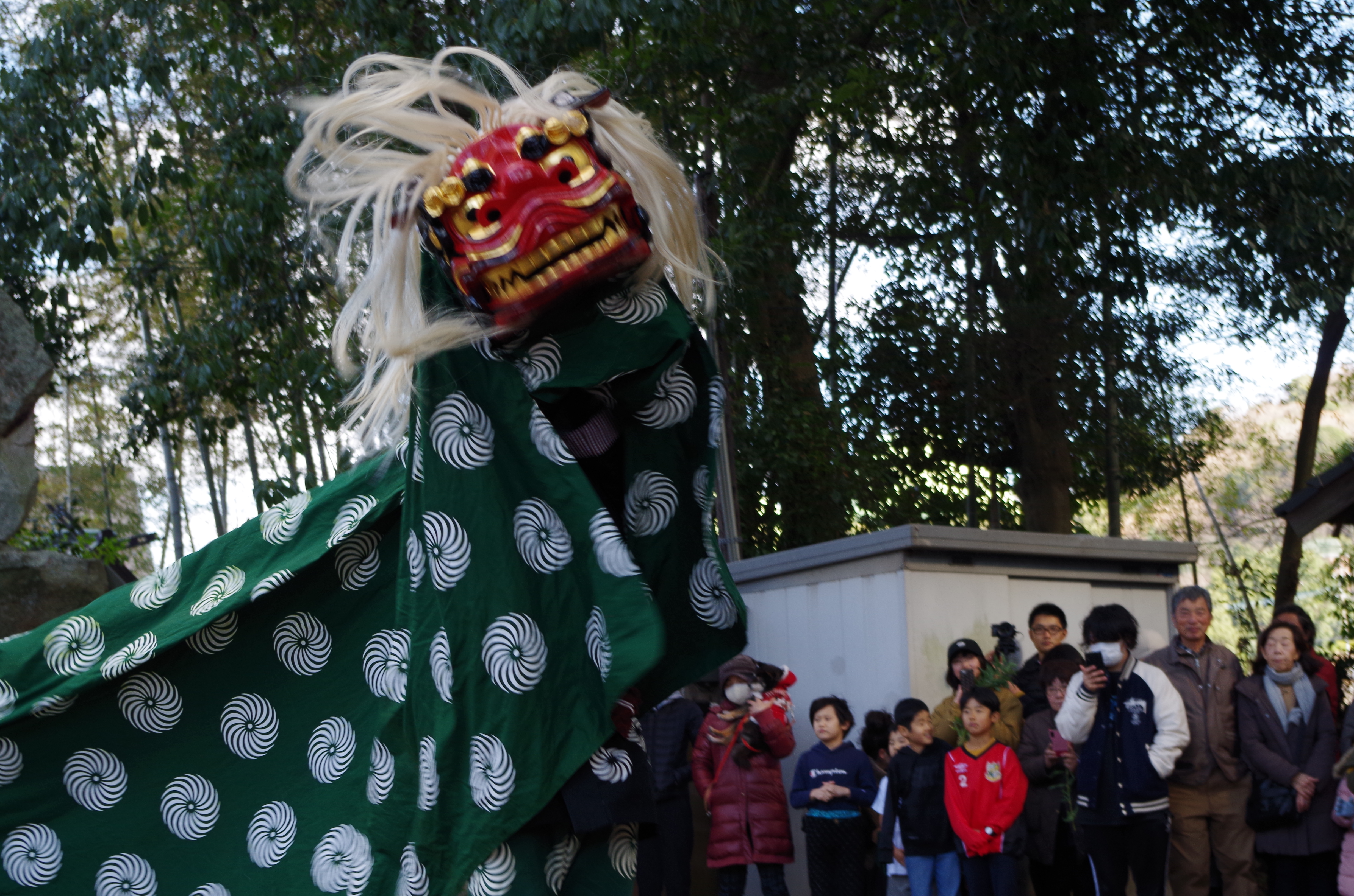 獅子舞の歴史は古く、約1300年前、高祖山の怡土城落成の時、青木地区の住民が獅子舞を奉納したのが始まりと伝えられています。戦後一度復活しましたが、後継者不足で途絶え、昭和50年に再復活しました。昭和52年、「福岡市無形民俗文化財」に指定され、今に続いています。