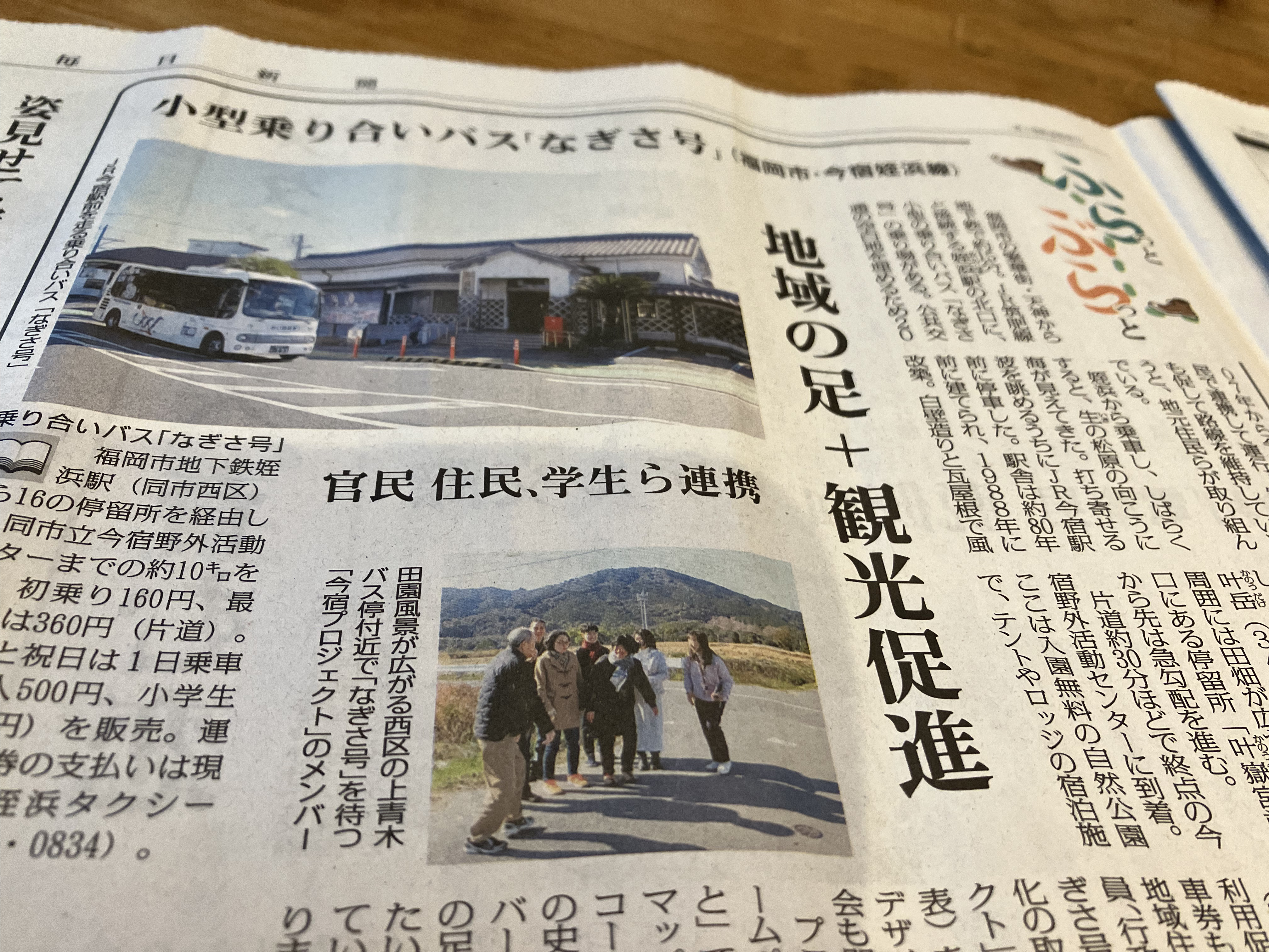 「動き続けていると、つながってくる。」これは、今回のミーティングで印象に残った言葉です。「今宿うみやまひと」プロジェクトは、地域のバス「なぎさ号」を守る活動から始まり、地域のメディア「今宿タイムズ」や文化継承の取り組みへと広がってきました。 議論を通じて、「なぎさ号」は単なる交通手段ではなく、人の思いを運ぶ“移動体メディア”になり得ることを実感しました。また、九大生のように入れ替わりながら地域に関わる存在も、変化を生み出す大切な要素です。 今宿の海と山に囲まれた豊かな自然環境は、多様な創造的活動を受け入れる余白を持っています。地域に残る遊休資産を、アーティストやリサーチャーが滞在し、活動できる場として活用することも、新たな価値を生み出す可能性があると感じました。さらに、「なぎさ号」をアートギャラリーにする、今宿歴史カルタをラップにするなど、地域の文化を新しい形で継承するアイデアも生まれました。 短い時間でしたが、地域の皆さんの取り組みや想いに触れ、大変刺激を受けました。 次はもっとゆっくりと今宿で過ごしたい。